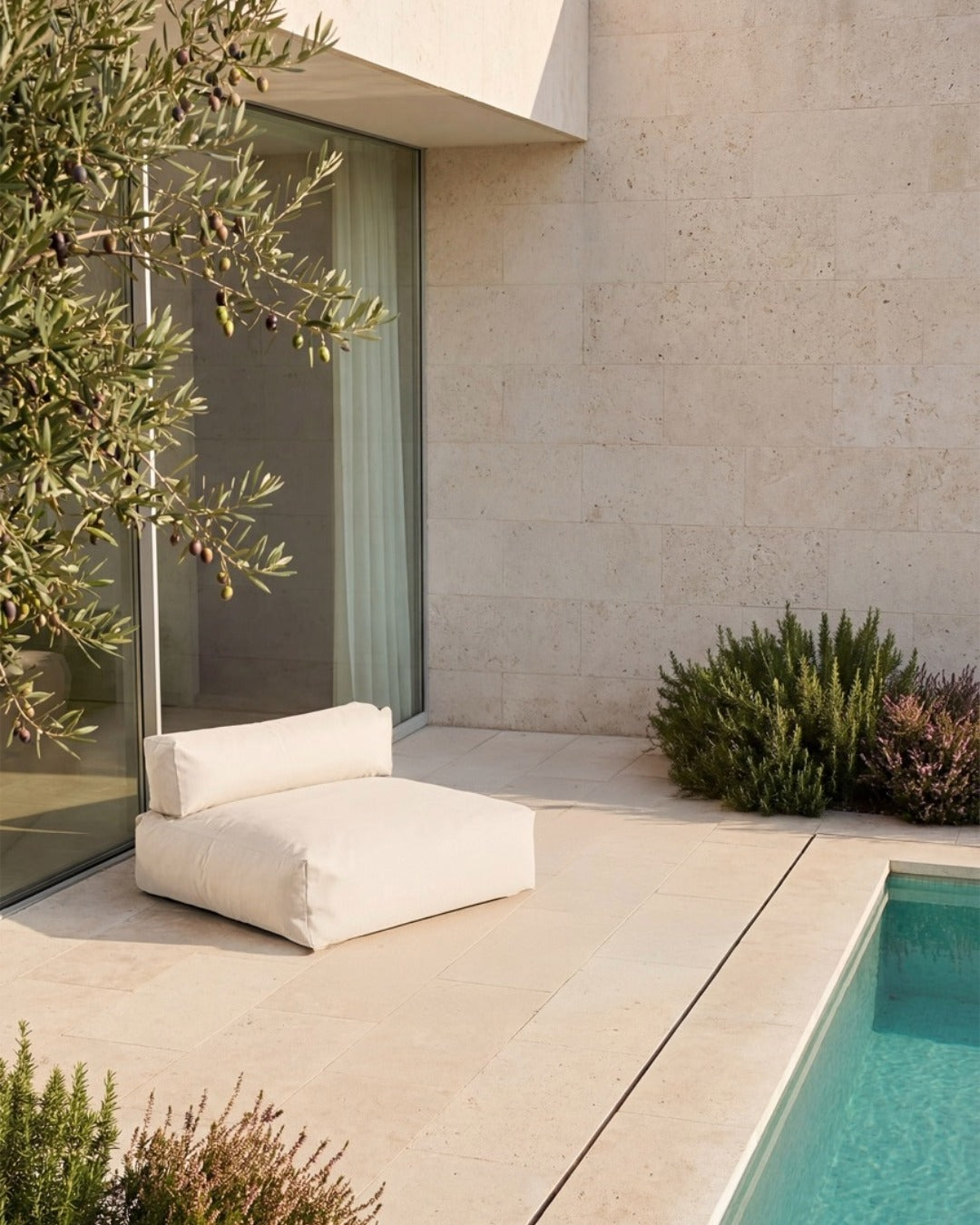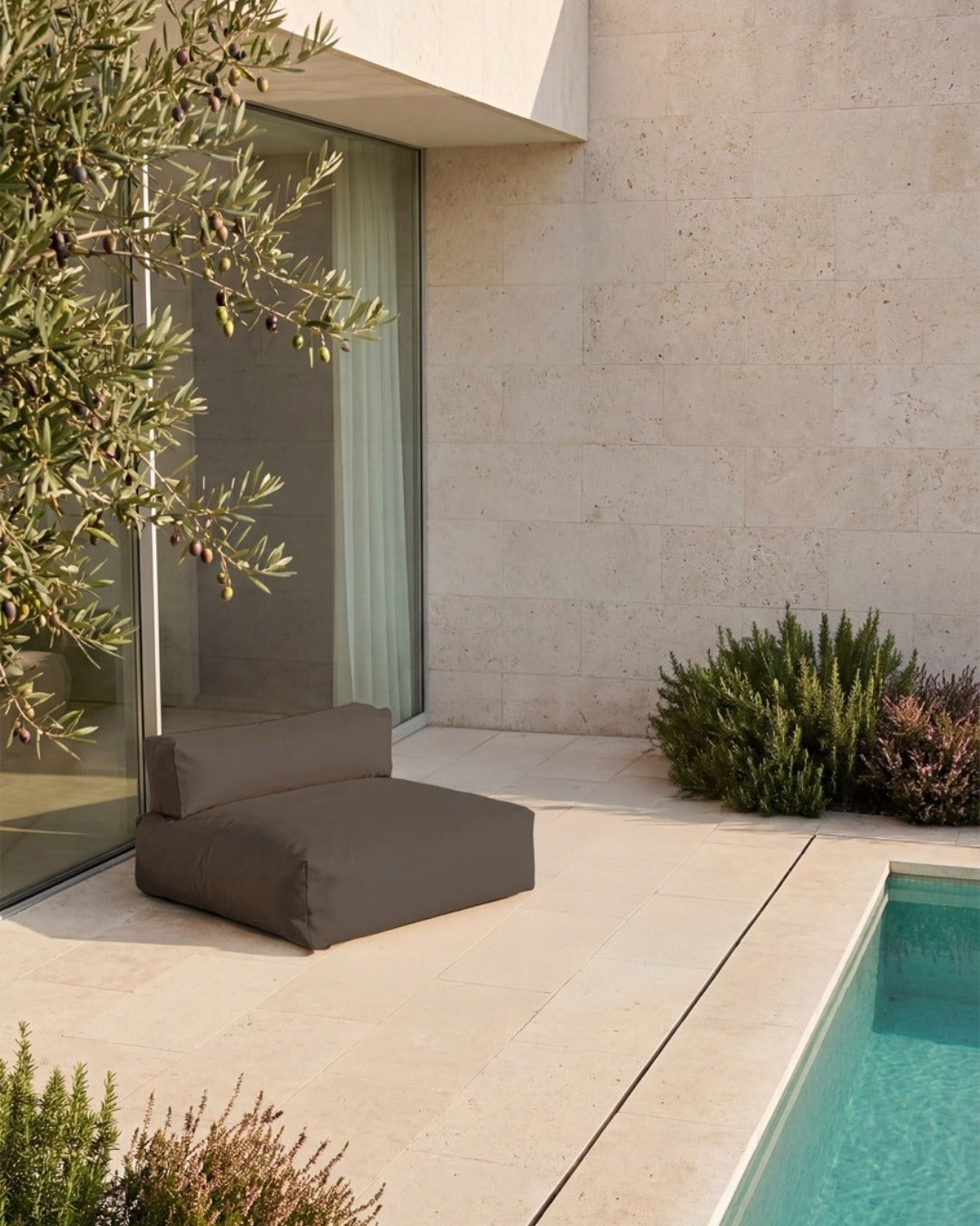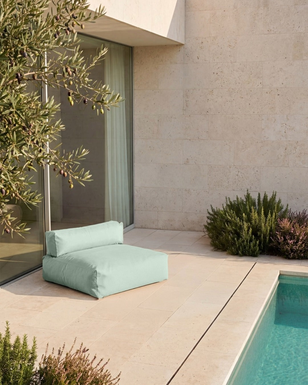 - Der Poolsofa Seat besteht aus Matratze und Rückenkissen