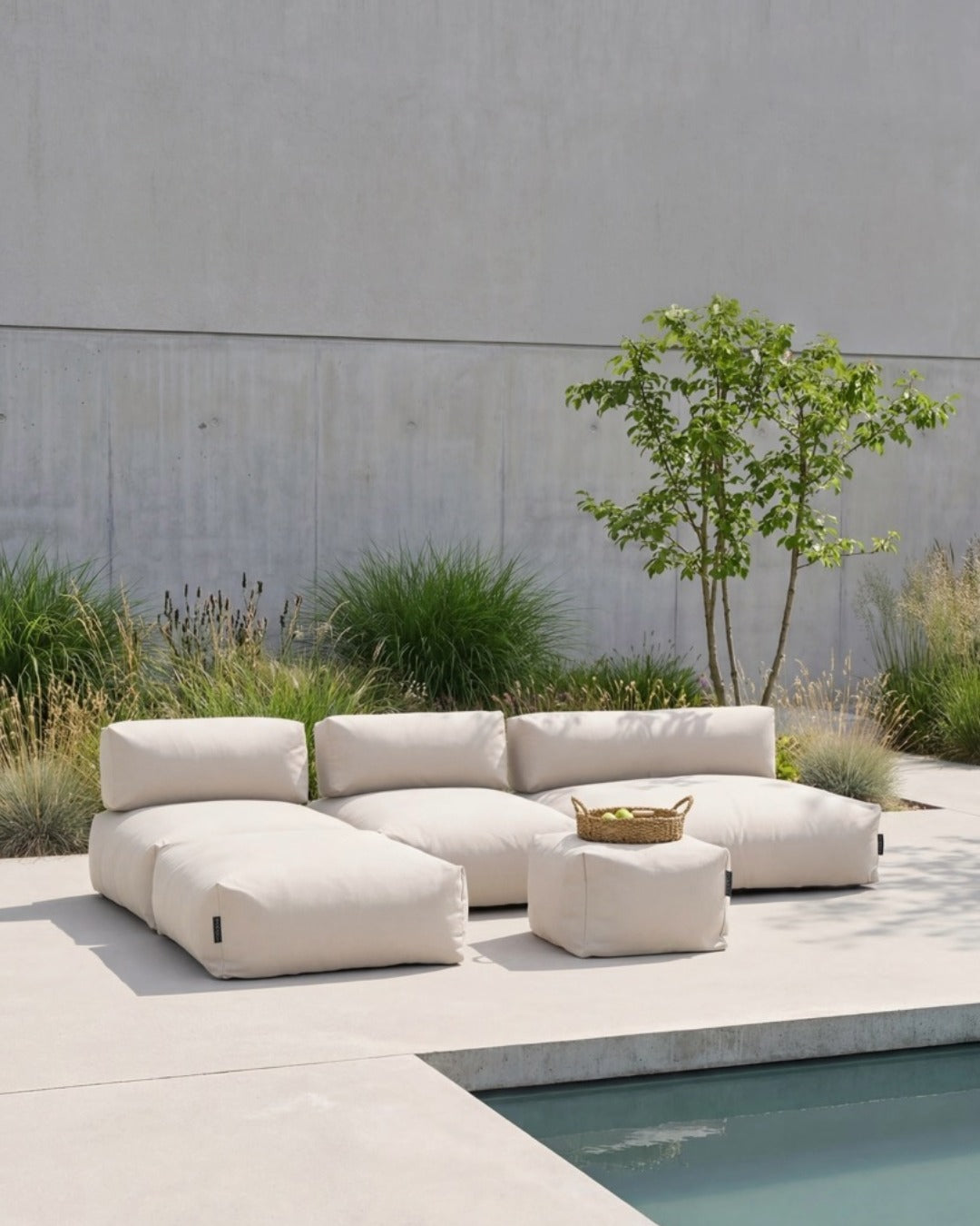 - 1x Poolsofa Double, 1x Poolsofa Single, 1x Pouf small, 1x Backrest small