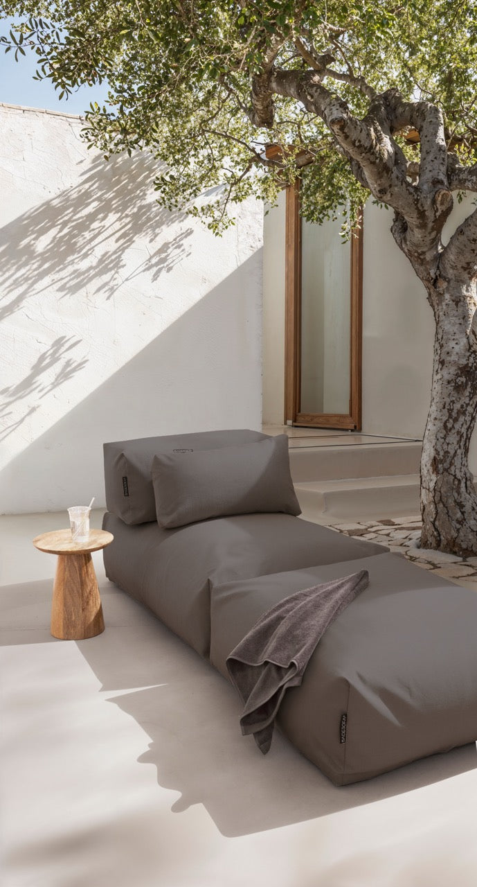 Magic Dry Function – After getting wet, the POOLSOFA® can simply be left on the terrace. Thanks to the inner cushion made of 3D mesh, water drains freely and independently from the mattress and cushions, while air can circulate inside. This allows the POOLSOFA to dry quickly and naturally on its own.