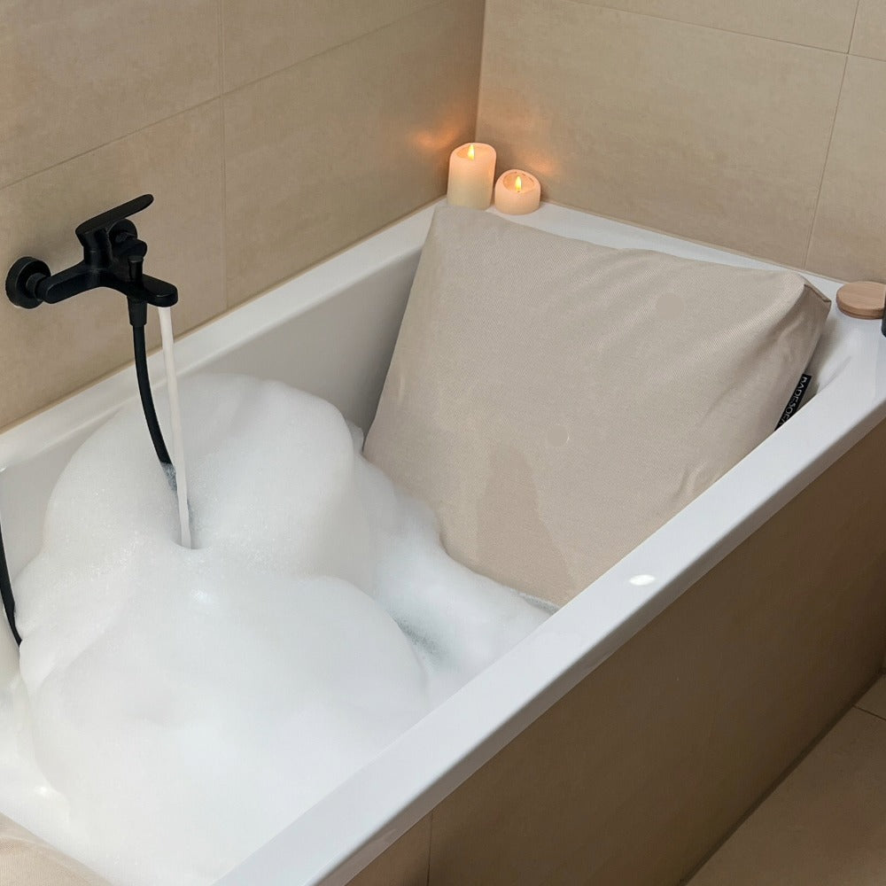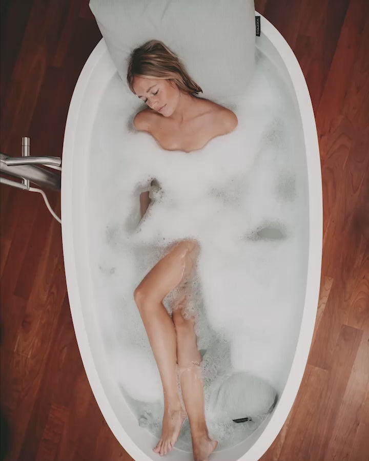 Gewone badproducten zoals schuimbaden, oliebaden of badzout zijn geen probleem voor onze materialen. Je kunt zoals gewoonlijk baden en schuim- of zeepresten indien nodig met een spons en een milde reiniger verwijderen.