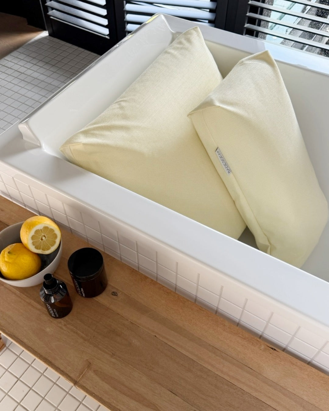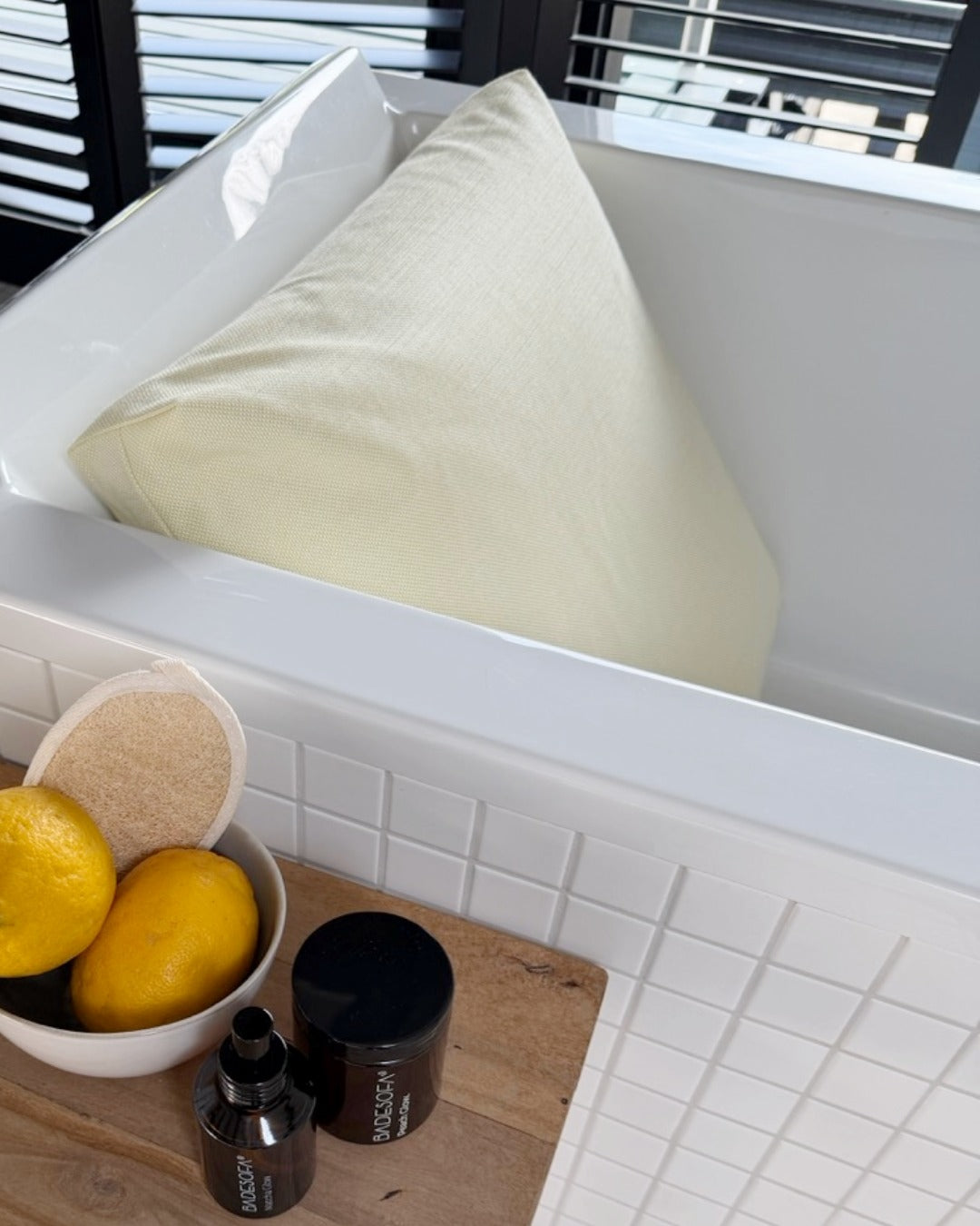 Geniet van uw bad met een rugkussen.